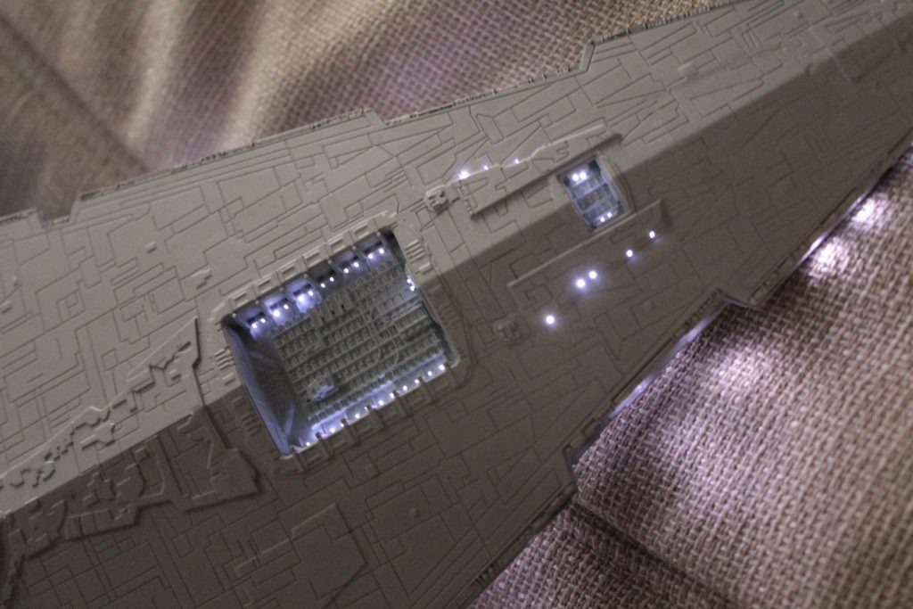 Aside from the standard washing of the kit in light soapy water, there wasn’t much to do before starting assembly type work. The big piece of prep work was far more to do with the lighting. All of the areas to be lit needed to get a good coat of black primer on the inside followed by a complimentary coat of white or steel. I did have some issues with the white, due mostly to my troubles working with my new airbrush. I needed to figure out how to clean it better to deal with what I thought were issues with the white paint.