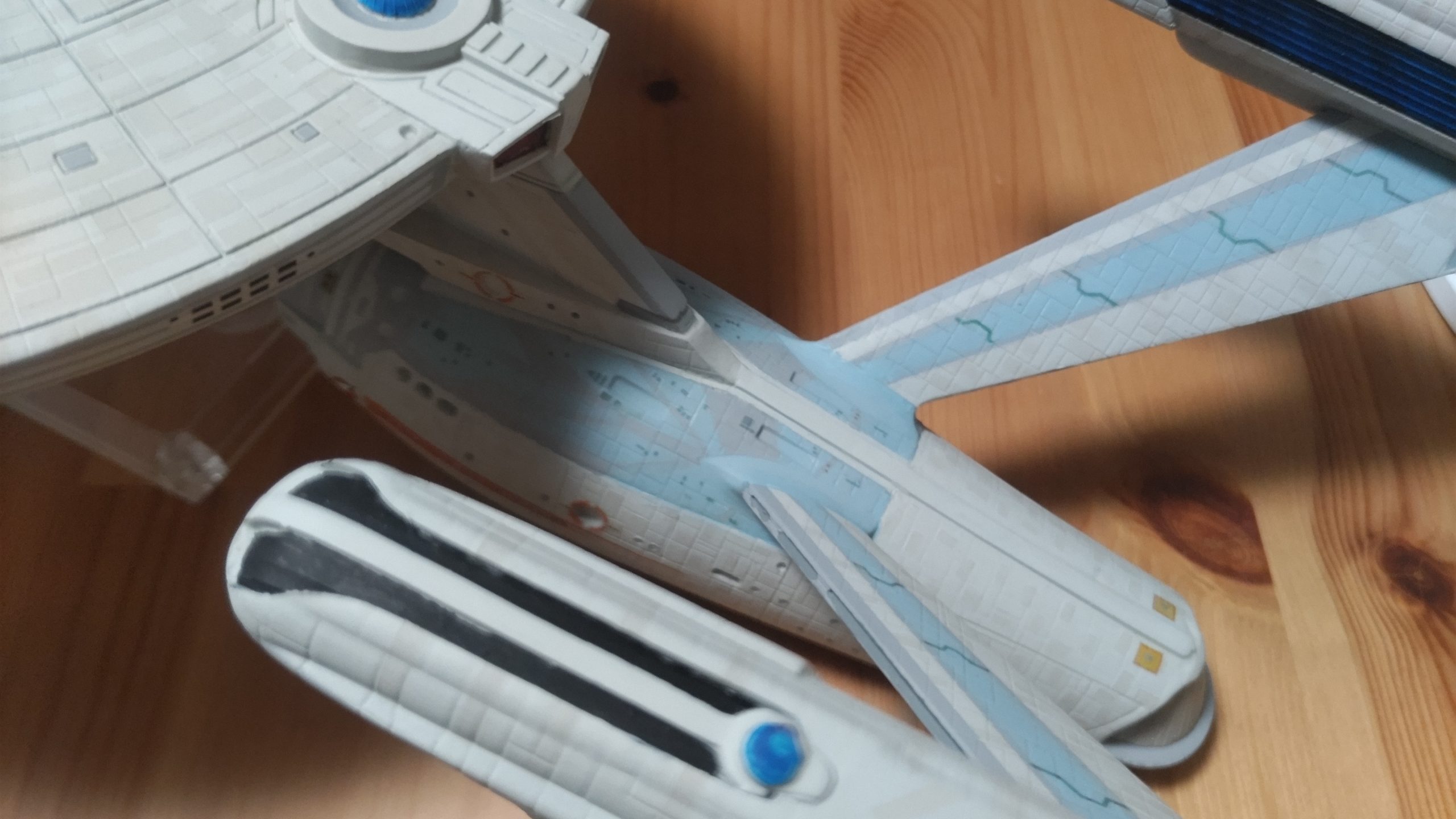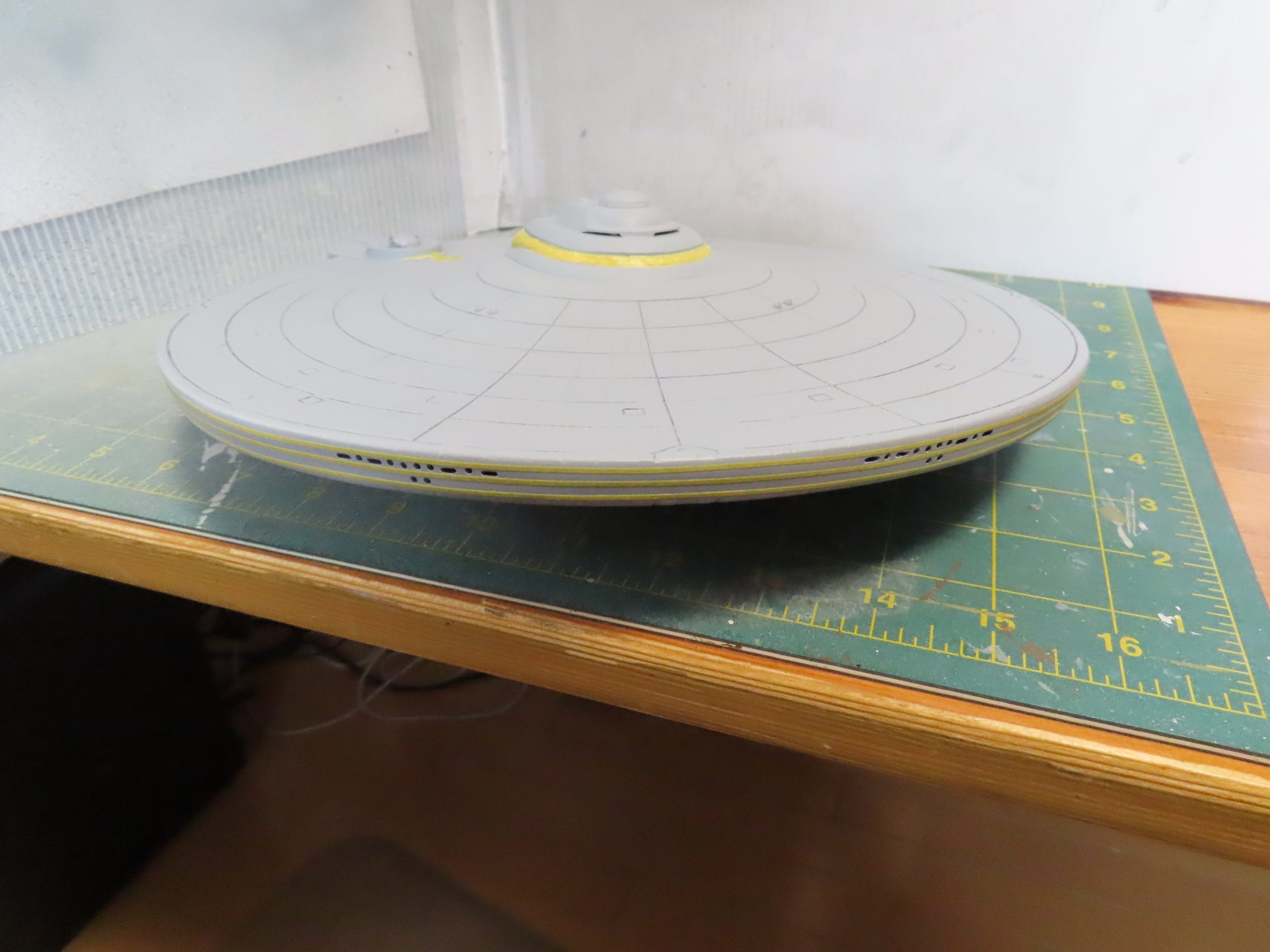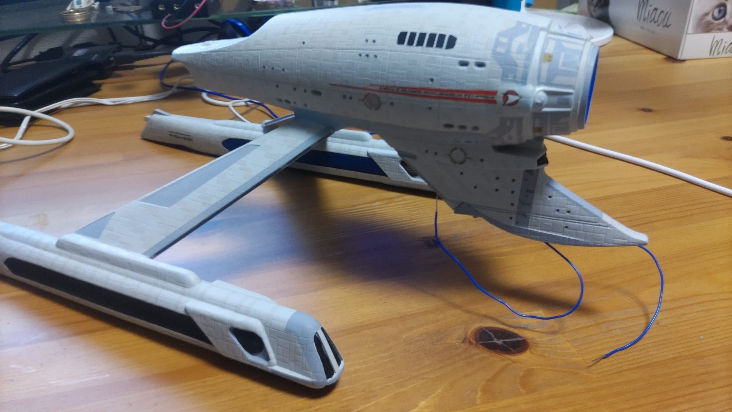 With most of the painting done, the scariest bit is the final assembly. Getting something wrong at this stage would be terrible, so it was a rather nervous few days putting the pylons onto the main hull and getting then onto the neck piece and finally the saucer.