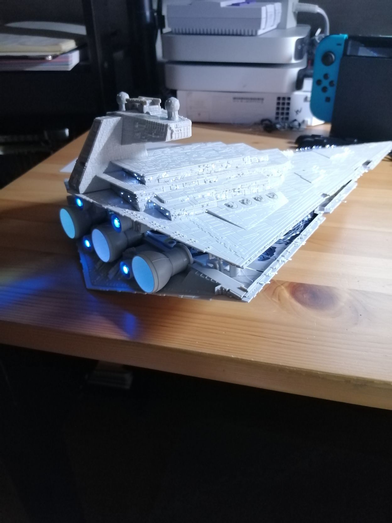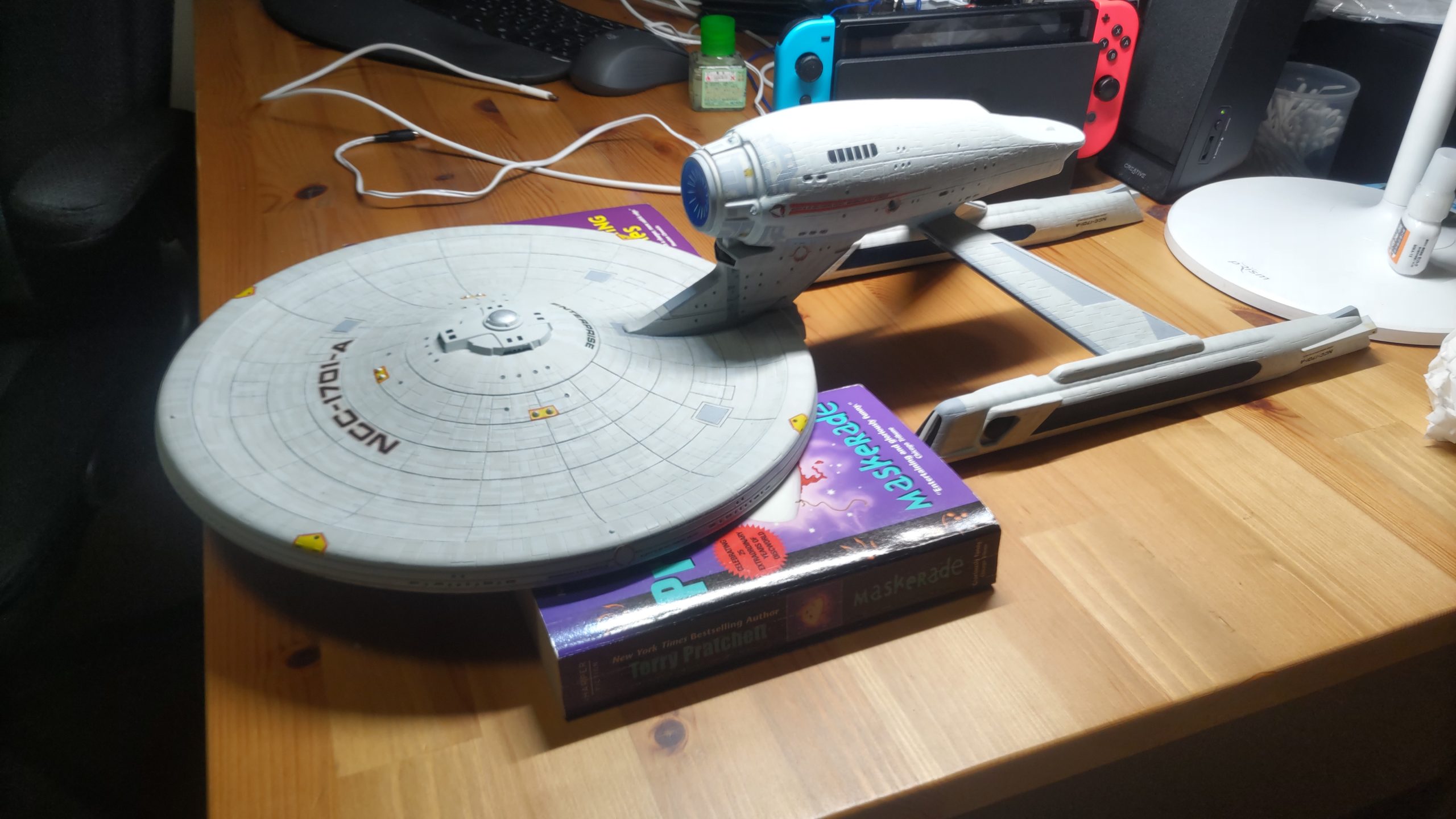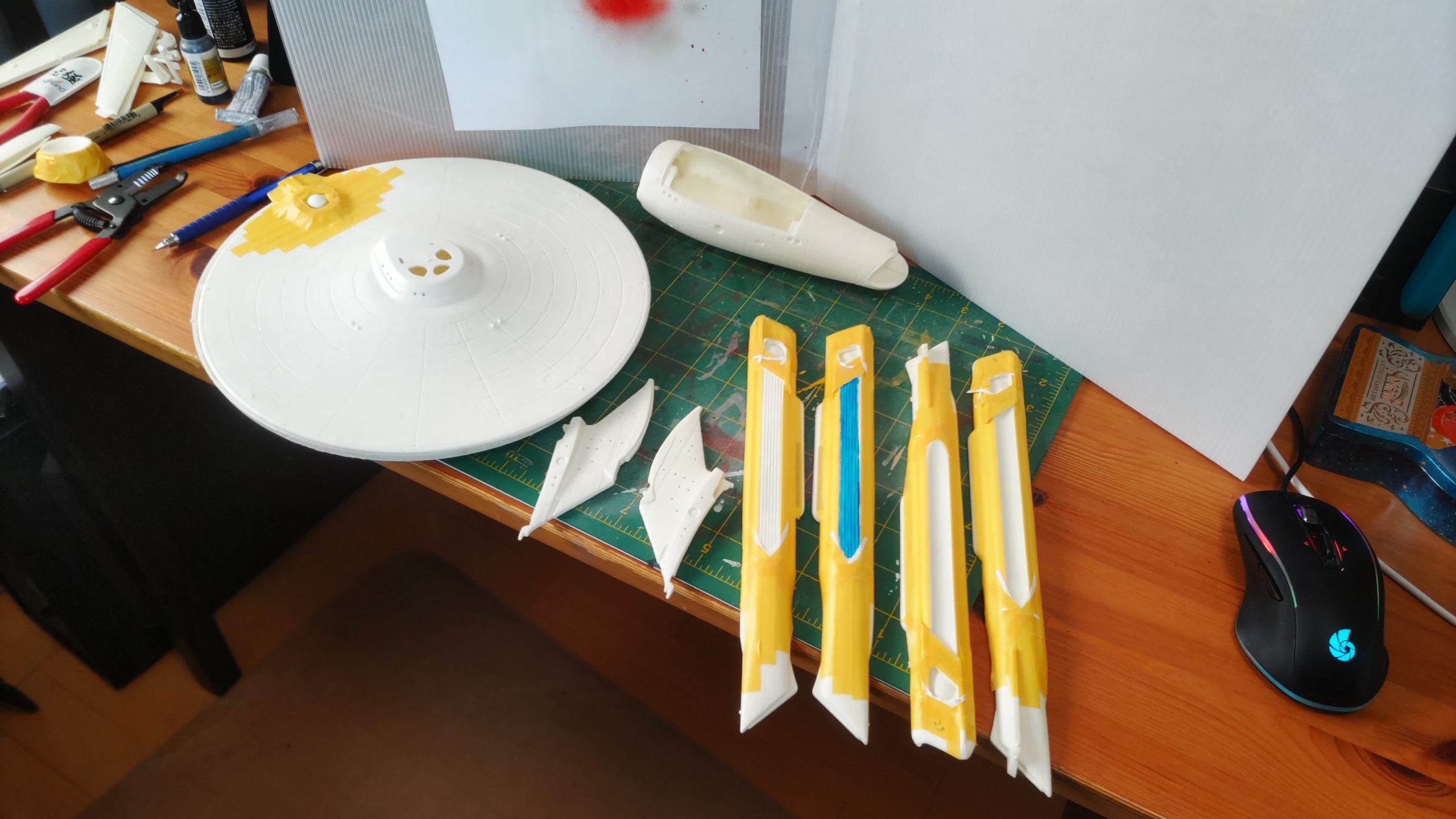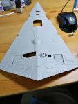 With most of the painting done, the scariest bit is the final assembly. Getting something wrong at this stage would be terrible, so it was a rather nervous few days putting the pylons onto the main hull and getting then onto the neck piece and finally the saucer.