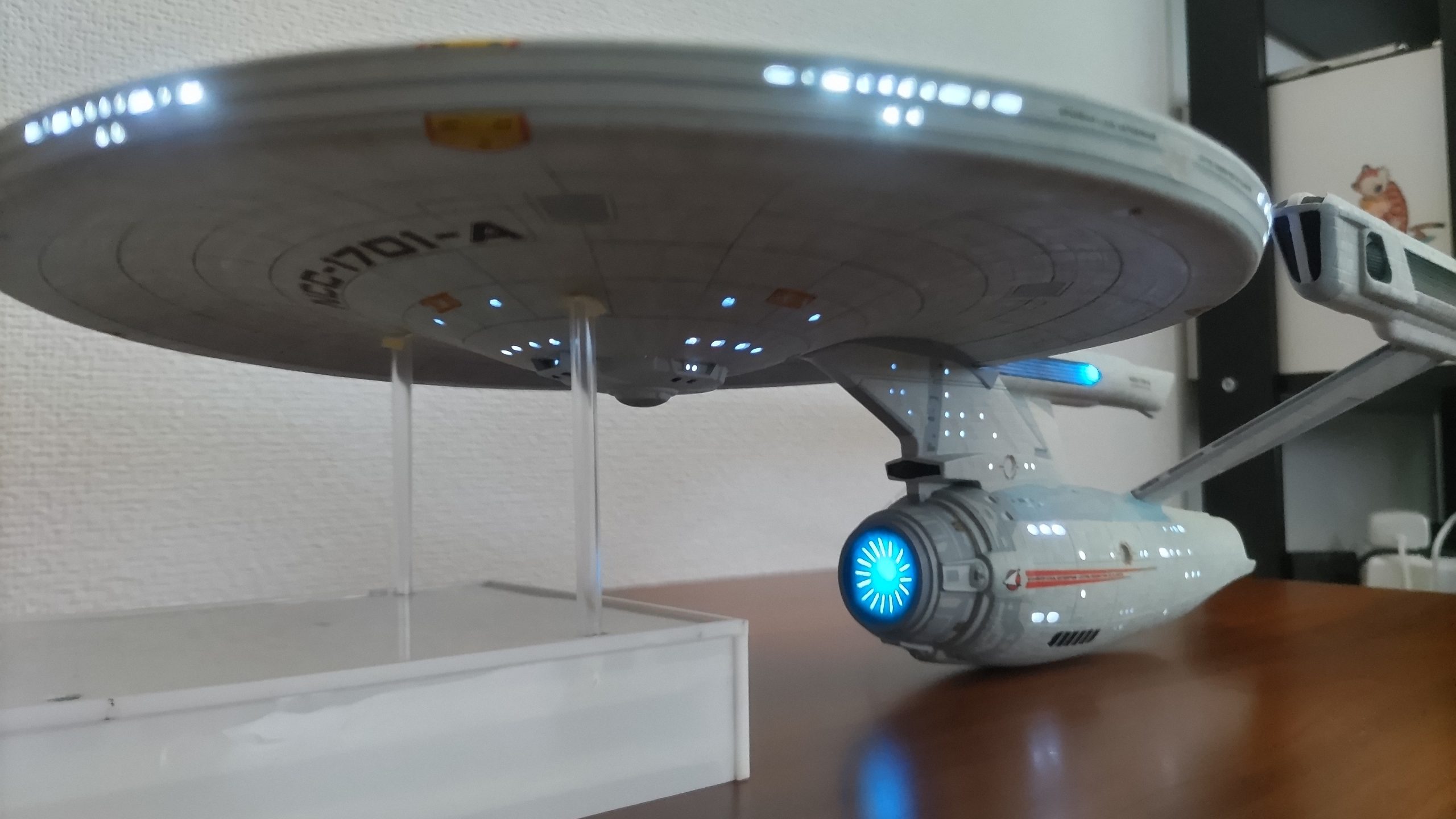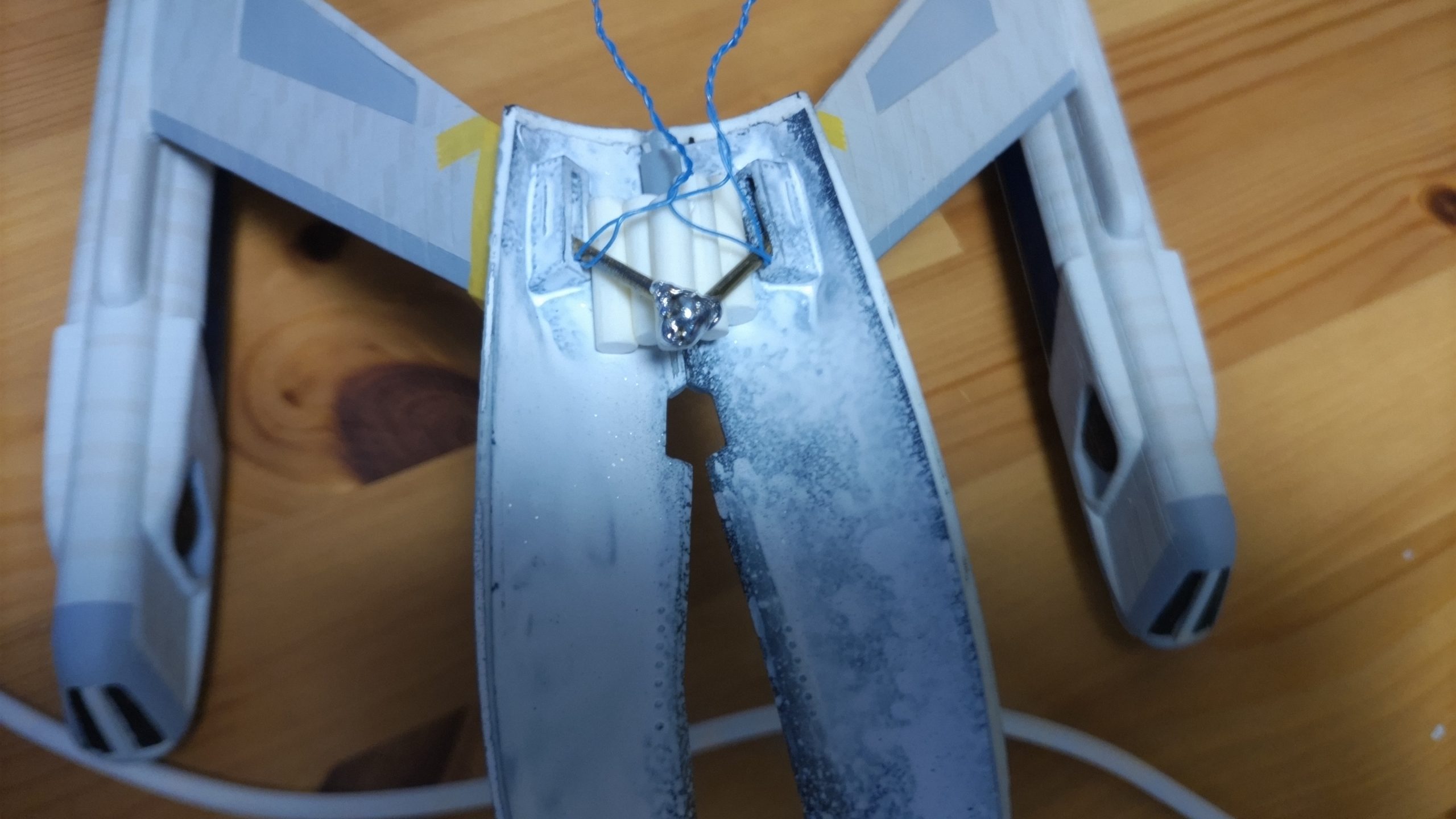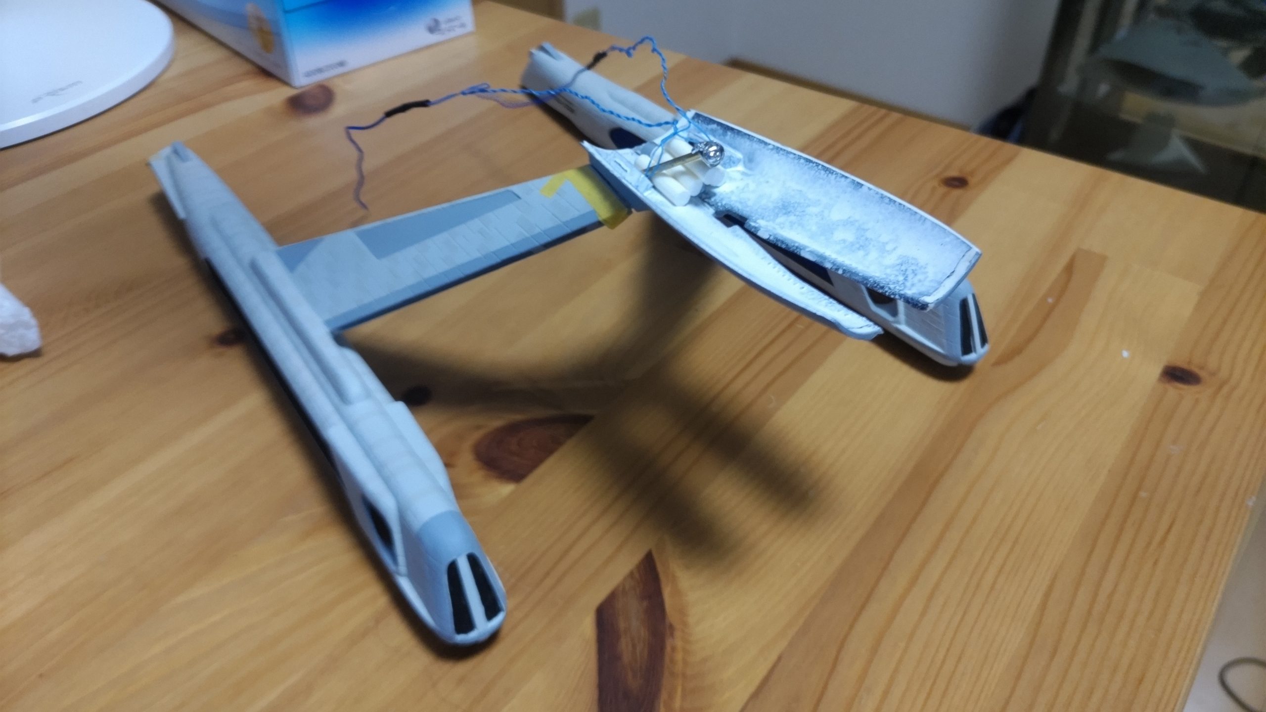 Assembling them upside down actually helped get the alignment on the nacelles right. It also made it easier to do that final solder joint that held firmed up the nacelles so they shouldn’t break. Unfortunately, not everything came together perfect, I got the neck a few degrees off. It’s hard to notice, but I can still see it.