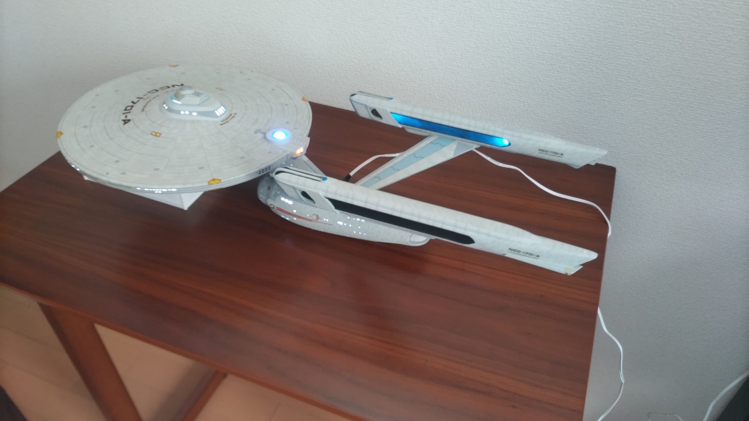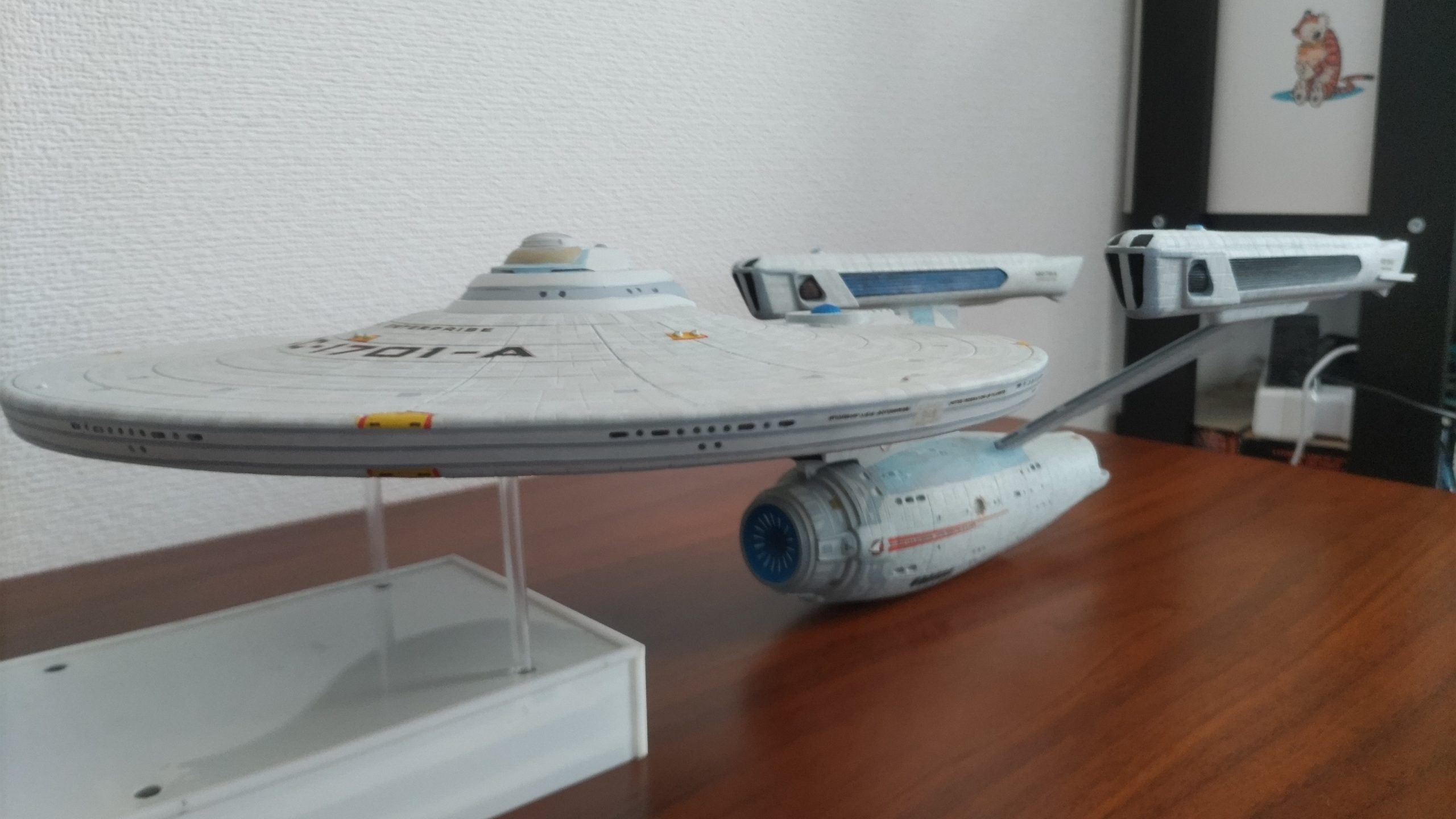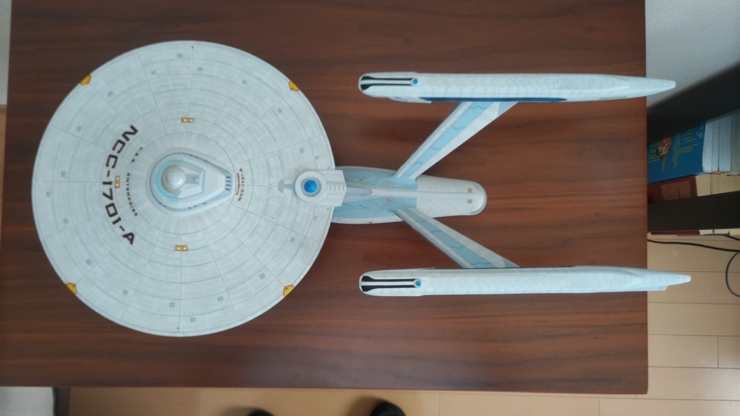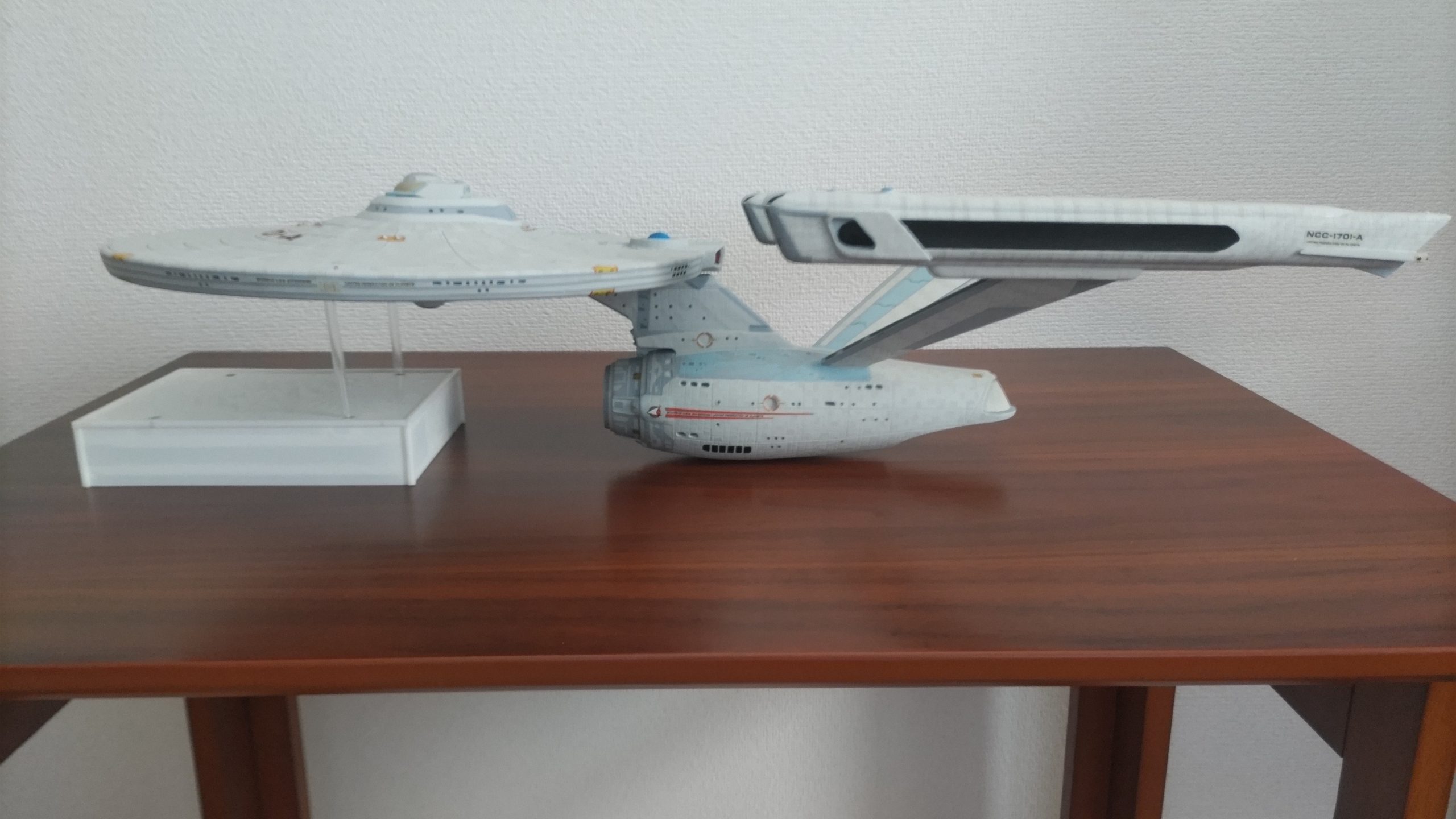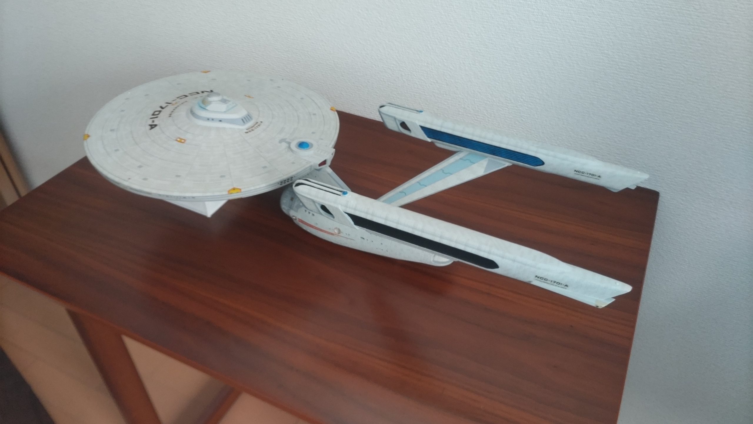 So when I found this kit at one of my local collectible shops in Kyoto for essentially $25 ( 3500 Yen ), I couldn’t resist. I am stuck back at the point of not having the room though, so I compromised and decided to build this kit for a friend of mine to put up in his bar/ live house. This is also the Star Trek 5 version, so it has the etched in ‘aztek’ pattern that was done by the manufacture after the original release. Those are pretty horrible, both as an idea and as executed, since they don’t in any way match the aztec patter that was painted on the actual filming model. I do have an original ‘smoothie’ version of the kit that I am saving to put together later. So this one is my ‘practice’ kit to put together, try out techniques and see what issues and tricks I need to learn before tackling the one I’ll build for myself, someday…